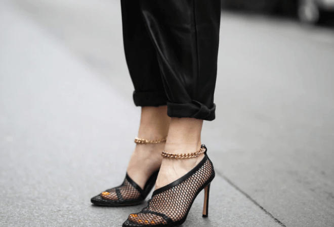 Tra gli accessori, invece, vero e proprio must per la tendenza a rete è la borsa. Prada reinventa i secchielli grazie al nylon, mentre le pochette in raso si rivestono di rete di ecopelle. Stella McCartney firma delle borse dai toni soffusi del bianco e ceruleo, con la parte superiore in rete in eco-nappa, da portare a mano. La rete-mania contagia anche i sandali, da quelli di Bottega Veneta con catena alla caviglia, ai modelli di Neous in pelle bianca, senza dimenticare i sandali SAI di Jimmy Choo, nella versione comoda e in quella di elegante sabot dai colori oro, rosa o nero.