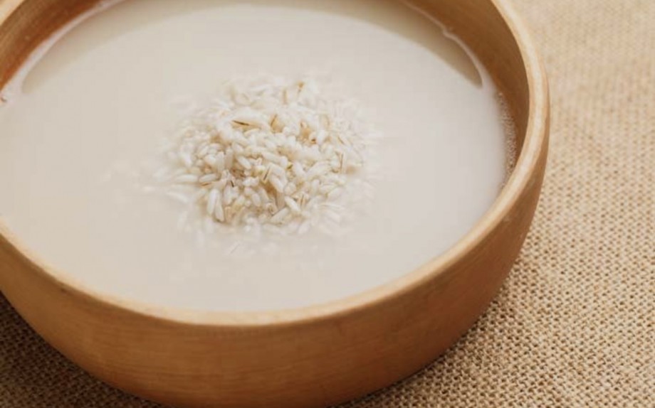 Coprire ½ tazza di riso con il doppio dell’acqua normalmente utilizzata per la cottura. Cuocere il riso in acqua bollente e filtrare l’acqua di riso in una ciotola pulita prima dell’uso.