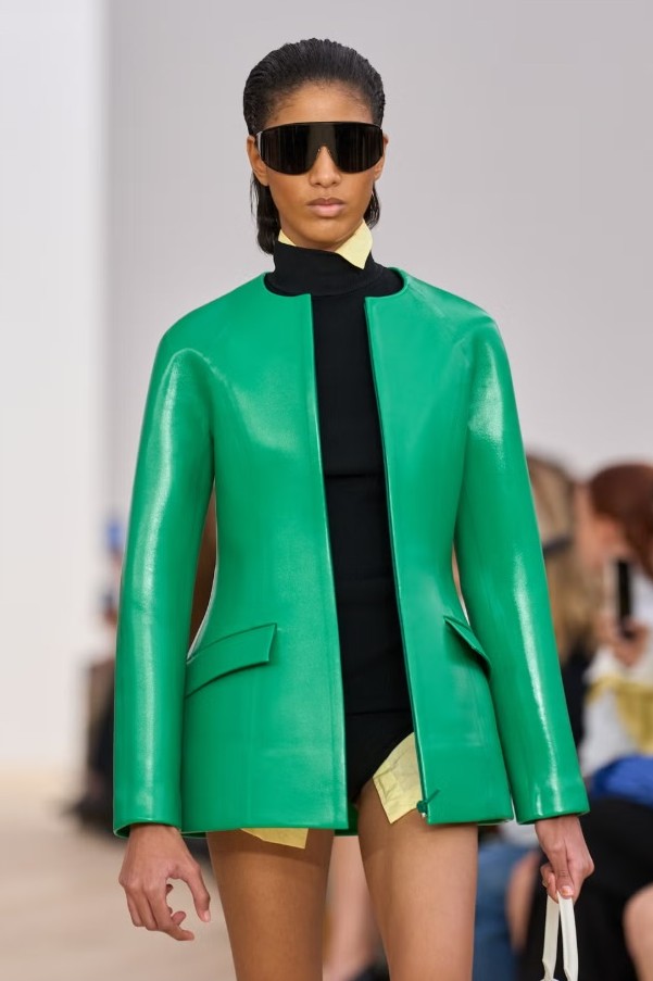 Un altro trend che abbiamo visto sfilare sulle passerelle è rappresentato dalla giacca di pelle. Un capo classico che si rinnova per essere attuale anche nella stagione che stiamo vivendo. I designer non pongono limiti alla creatività e sperimentano in tema di modello e colore. Le giacche di pelle rinascono in un certo senso, sono delle icone di grande impatto. Loewe suscita stupore portando in passerella una giacca di pelle dal verde brillante, mentre Prada non dimentica la tradizione con un modello nero oversize e Khaite ne propone una di colore rosso dalle spalle extra large.