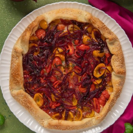 Ricetta della galette salata ai pomodorini e cipolle caramellate