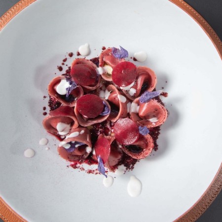Ricetta dei ravioli del plin di barbabietola al burro affumicato e fonduta di formaggio di capra